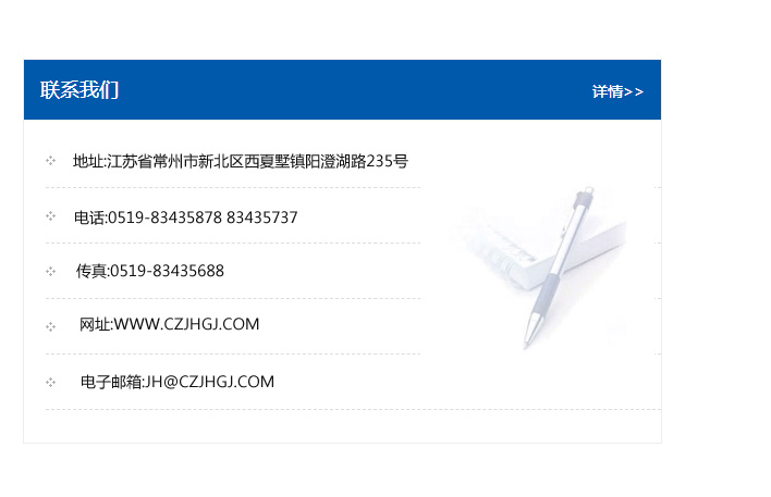 傳真:0519-83435688    郵編:213135    網址:WWW.czjhgj_com.meilinjt.com    電子郵箱:JH@czjhgj_com.meilinjt.com